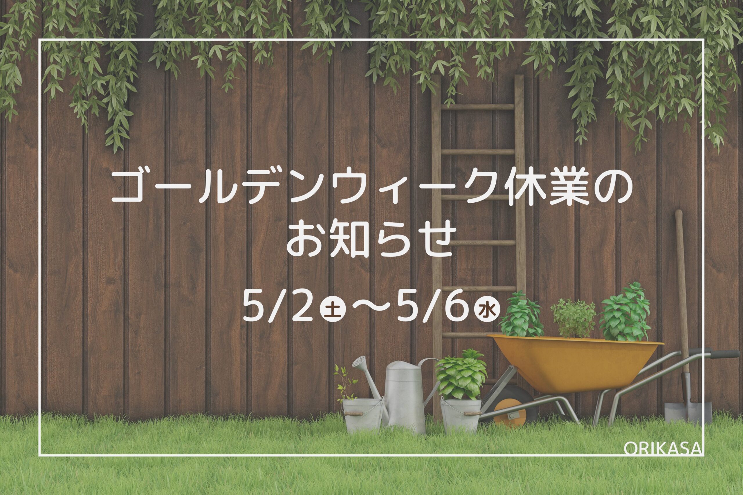 ブログ トップブログ【ゴールデンウィーク休業のお知らせ】 お知らせ 2026.4.27 【ゴールデンウィーク休業のお知らせ】 下記の期間をゴールデンウィーク休業とさせていただきます。 [休業期間] 5月2日〜 5月6日 5月7日より通常通り営業を行います。 休業中にいただきましたお問い合わせにつきましては、休業明けに順次対応させていただきます。 皆様にはご迷惑をおかけしますが、何卒ご了承いただきますようお願い申し上げます。 ブログ一覧に戻る カテゴリー すべて お知らせイベント折笠Jukuオリカツ不動産情報